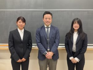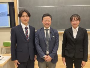 後半には学生からの質問にも一つひとつ丁寧に答えてくださり、私たちの疑問や不安に寄り添いながら、教育者としての姿勢を示してくださいました。講話全体を通じて、教育現場で求められる情熱と実践力を肌で感じることができ、大変有意義で心に残る時間となりました。